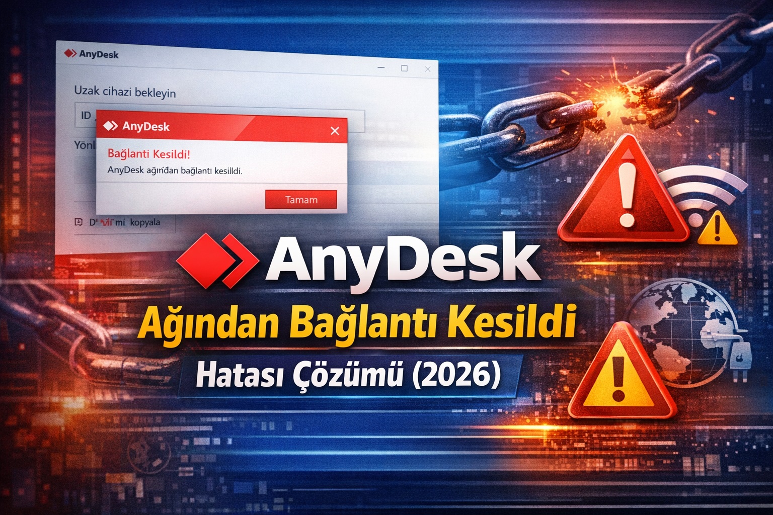 AnyDesk kullanarak başka bir bilgisayara uzaktan bağlanmaya çalıştığınızda, “AnyDesk ağından bağlantı kesildi” hatasıyla karşılaşabilirsiniz. Bu, uygulamanın AnyDesk ağ sunucularıyla bağlantı kuramadığını veya sürdüremediğini gösterir ve uzaktan oturumun başlatılmasını engeller.