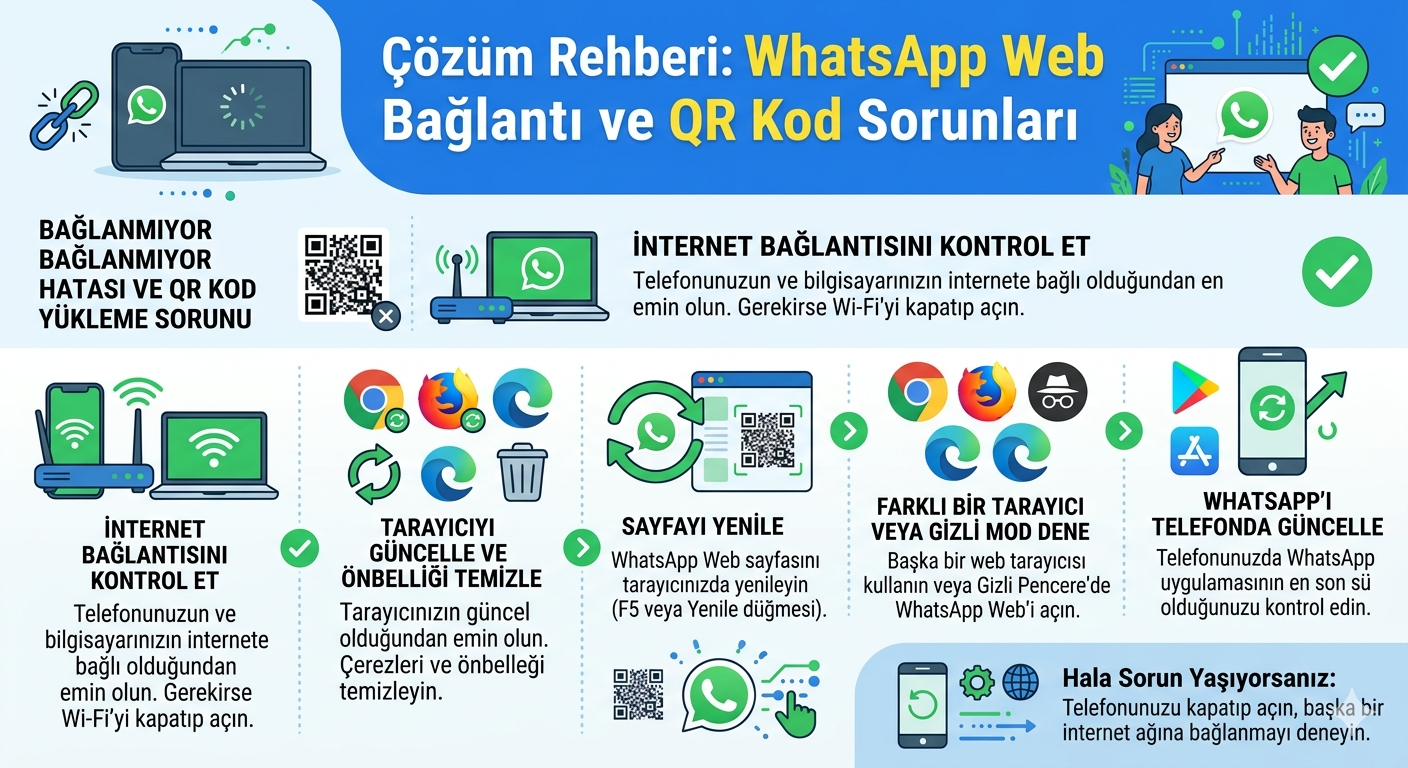 Kullanıcılar, bilgisayar başında çalışırken mesajlarına hızlıca yanıt vermek için WhatsApp Web platformunu tercih etmektedir. Ancak bazen QR kodun yüklenmemesi veya WhatsApp Web bağlanmıyor hatasının ekrana gelmesi tüm işleyişi bozar. Bu durum genellikle tarayıcı önbelleğindeki hatalı bir veriden veya telefon ile bilgisayar arasındaki kopukluktan kaynaklanır. Ancak endişelenmeyin; çünkü teknik bir uzman olmanıza gerek kalmadan, sadece birkaç basit adımla bağlantınızı saniyeler içinde geri getirebilirsiniz.